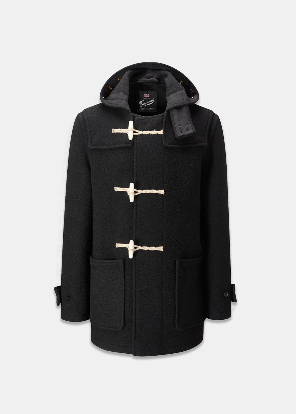 Built to last, it features durable wooden toggles and rope fastenings. The fixed shoulder cape reinforces the coat while adding extra warmth to the sumptuous wool and cotton herringbone interior detail.