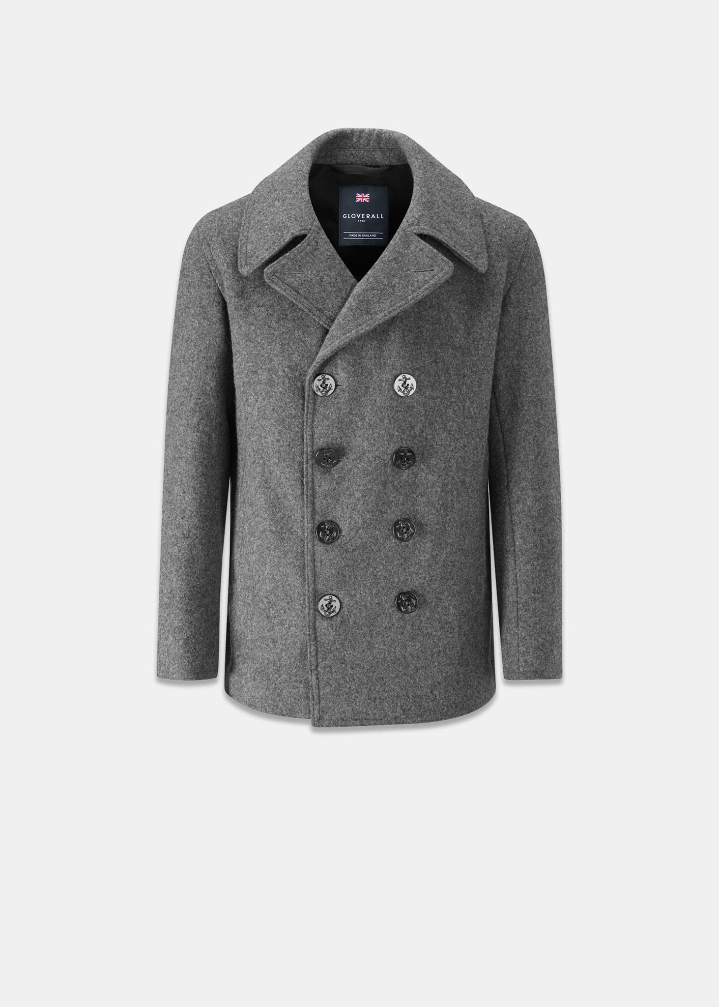 Fabriqué à partir de tissu 100 % laine melton, il présente une coupe ajustée moderne, un col épais et 10 gros boutons en relief avec un motif d'ancre pour un clin d'œil à l'héritage nautique du style.