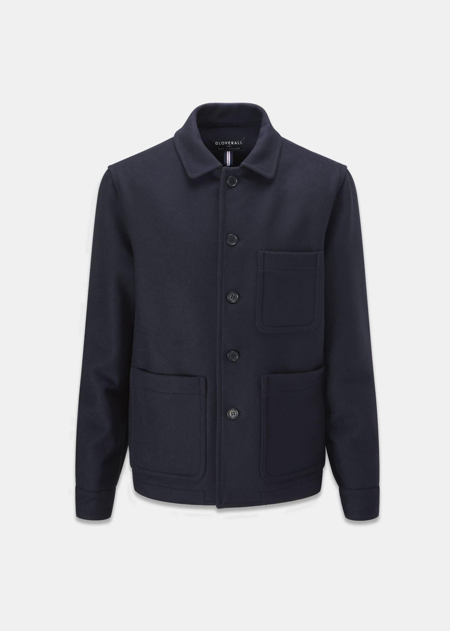 イタリア製のウールメルトン生地を使用し、内側は丁寧に縫い合わせたフルバインディングシームで仕上げられ、大きなパッチポケットが付いています。