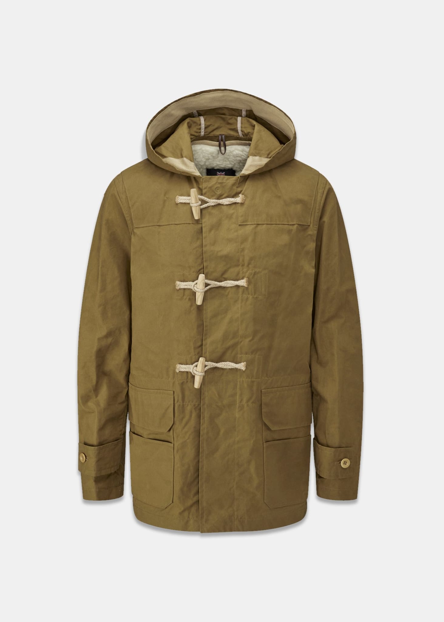 Finishing just below the hip, the outer of the Bailey duffle coat is made from a dry wax cotton from Scottish weavers Halley Stevensons.