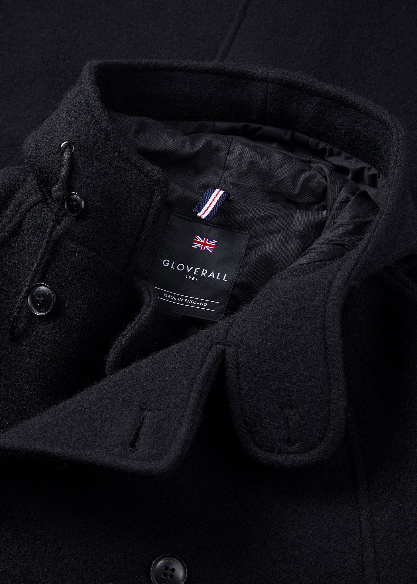 Cut from 100% wool, the coat offers dependable warmth and comfort. It features button-down front fastenings, two front patch pockets, and a discreet internal buttoned pocket — ideal for keeping essentials close. A fixed hood with drawstring lends a subtle maritime sensibility, offering both practicality and a hint of naval tradition.