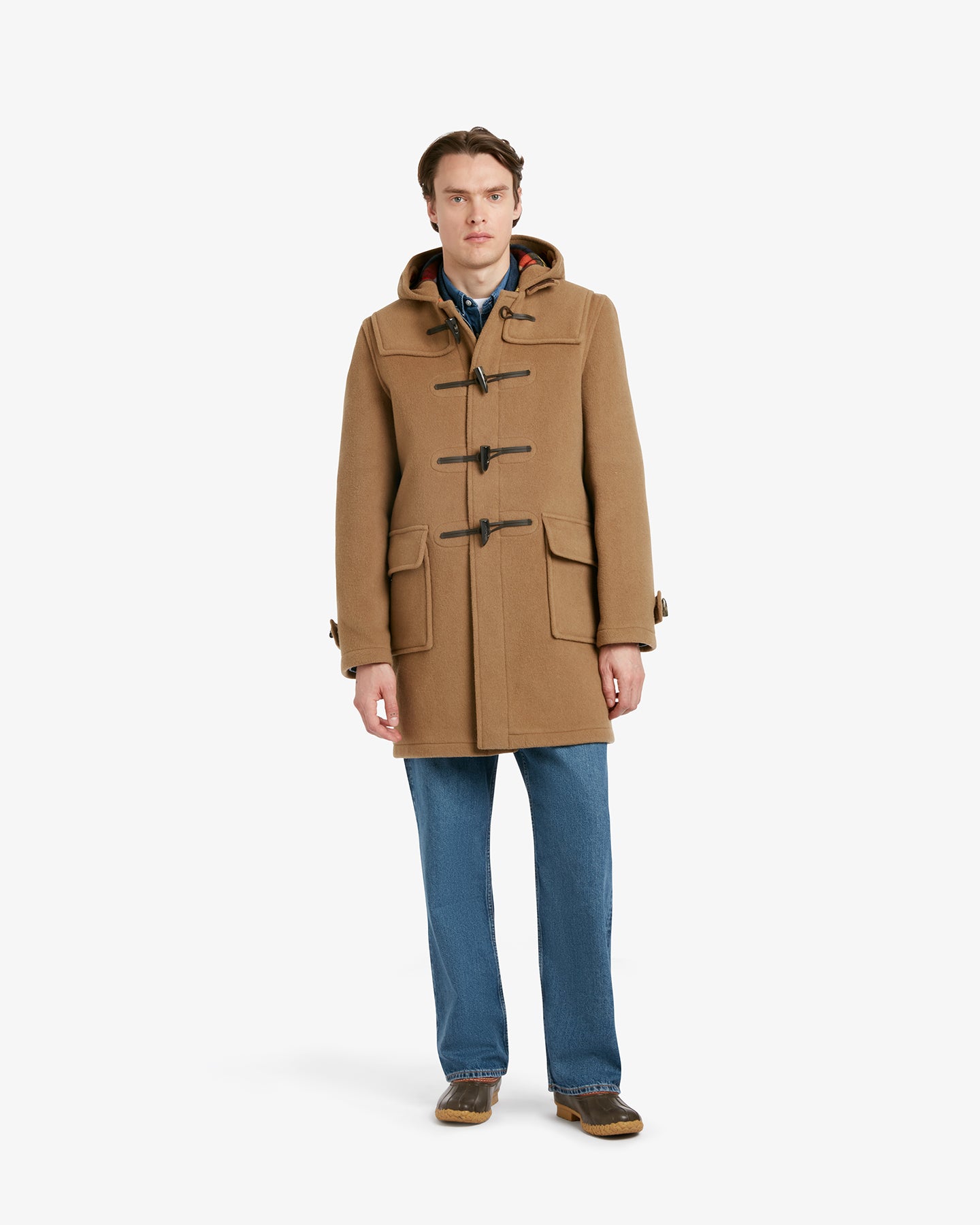 The Morris Duffle Coat (or Duffel Coat) tips its cap to our heritage - named for the Gloverall founding family - crafted to keep you warm right up to the button-adjusted hood.