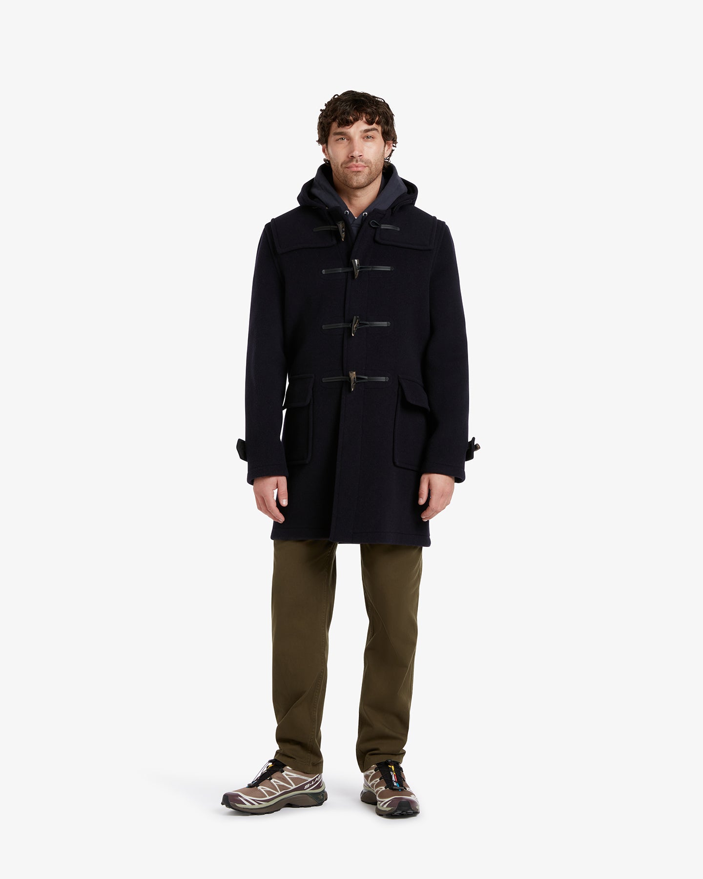 The Morris Duffle Coat (or Duffel Coat) tips its cap to our heritage - named for the Gloverall founding family - crafted to keep you warm right up to the button-adjusted hood.
